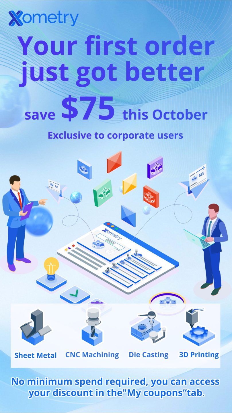 Discover a smarter, faster way to source custom parts in just a few clicks. As a new corporate user, you’ll enjoy $75 off your first order—with no minimum spend required.